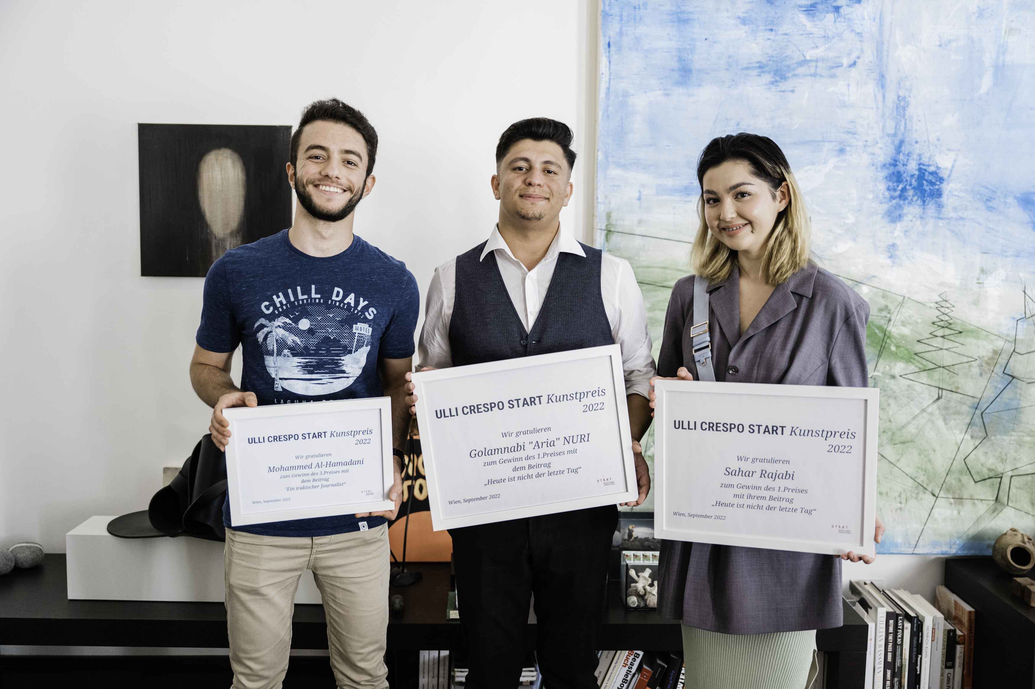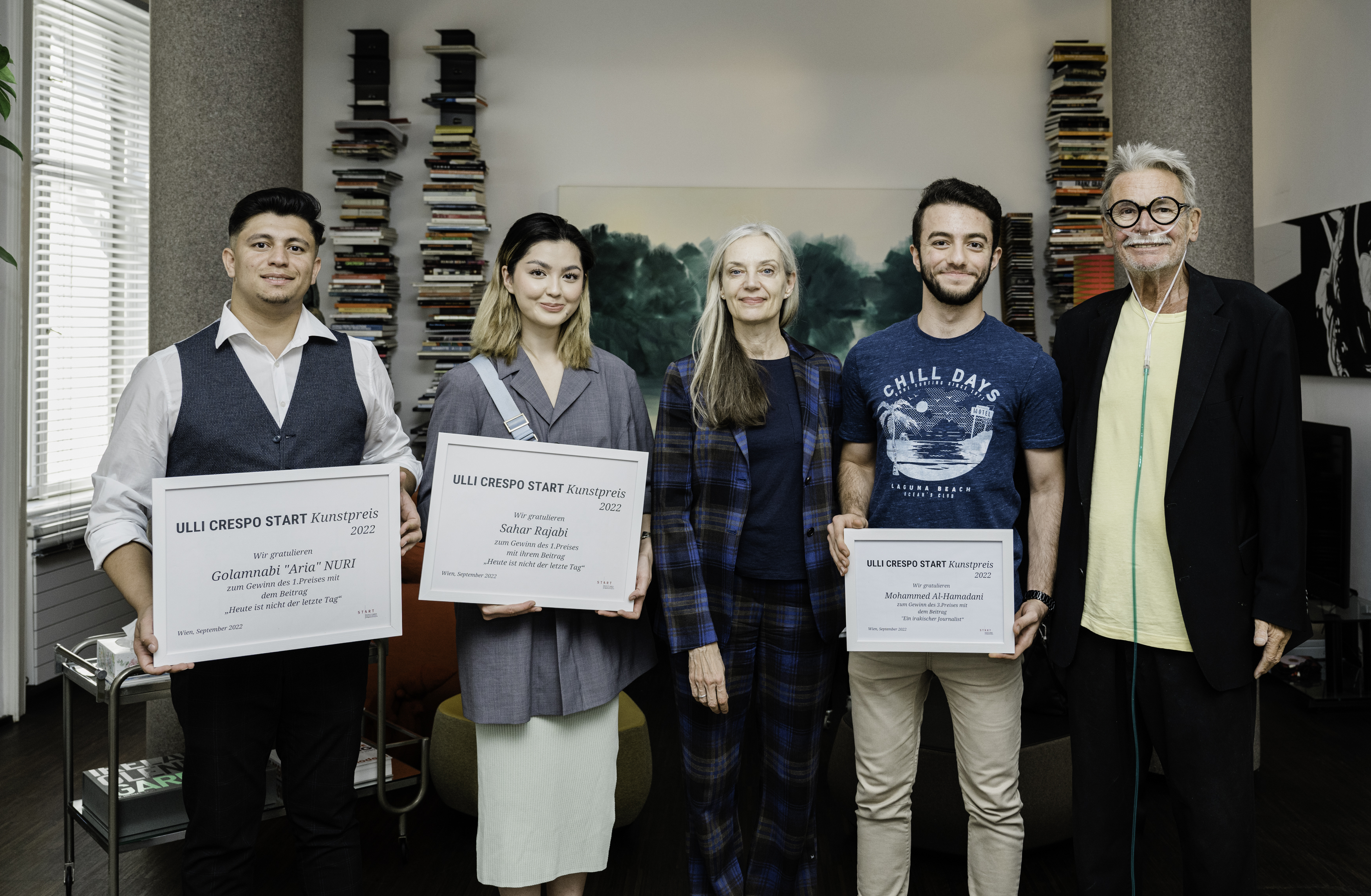 In der Jury des 2020 ins Leben gerufenen Kunstpreises saßen Michael Satke, bis zuletzt Lebensgefährte von Ulli Crespo, Heidi Löber, Patin des START-Stipendienprogramms, Luna Al-Mousli, ehemalige START-Stipendiatin, Autorin und Grafikdesignerin, sowie Katrin Bernd, Geschäftsführerin beim Verein START-Stipendien Österreich.