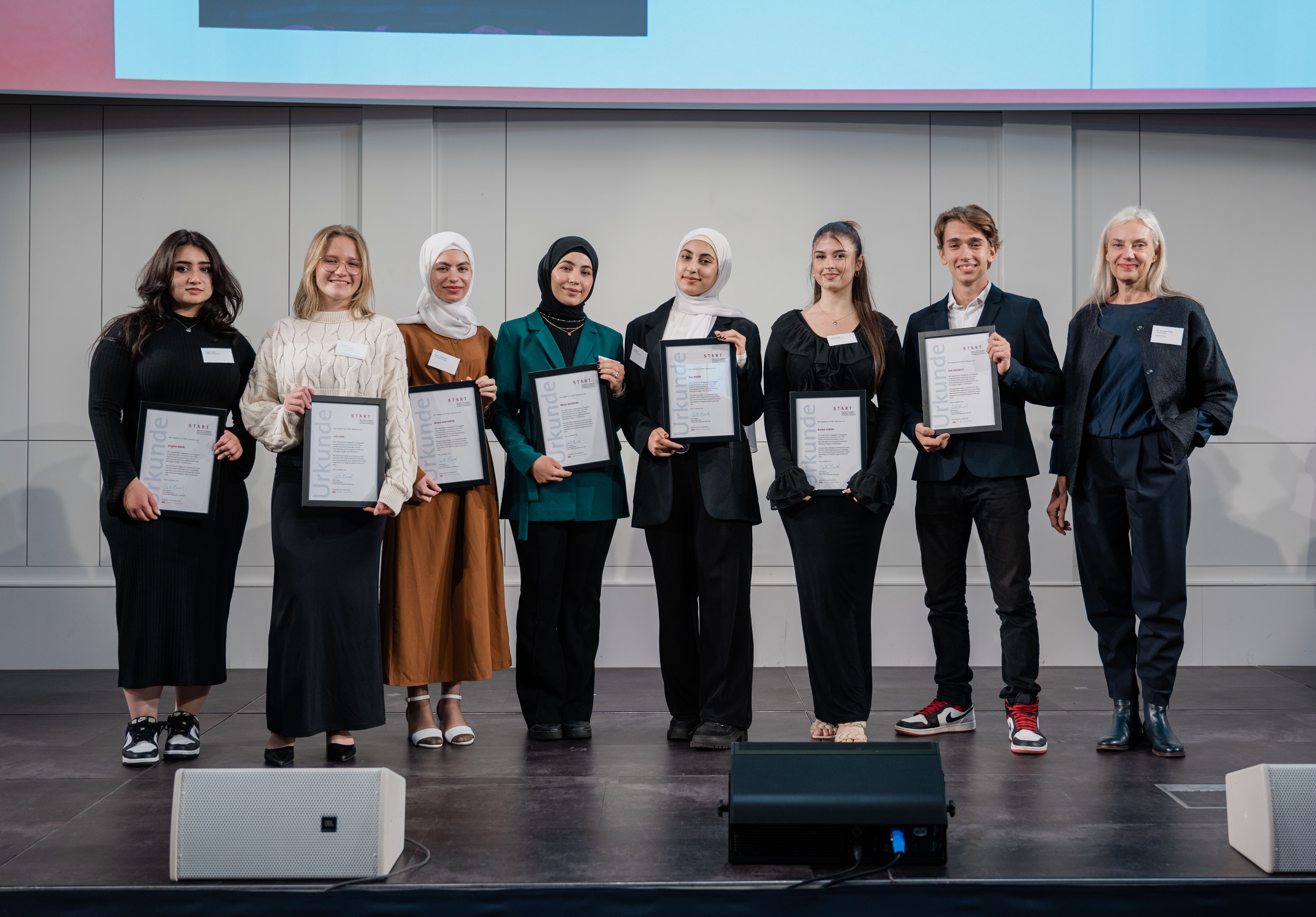 „Jugendliche mit Migrationsgeschichte müssen auf ihrem Bildungsweg viele Hindernisse überwinden. Das Ziel von START ist es, den Stipendiat:innen hilfreich unter die Arme zu greifen und ihnen Chancen zu eröffnen. Der Blick auf die Absolvent:innen macht mich jedes Jahr aufs neue stolz auf das Engagement dieser jungen Erwachsenen“, so die Geschäftsführerin des Vereins START-Stipendien Katrin Bernd bei der Begrüßungsfeier.